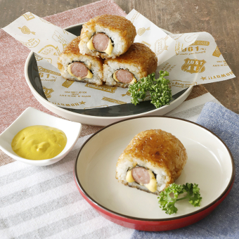 把熱狗和起司包進飯糰裡,一口咬下超滿足,表面煎出微微的焦香,再刷上鹹甜交織的照燒醬,鹹香飽滿,加一點黃芥末,怎能不讓人食慾大開~